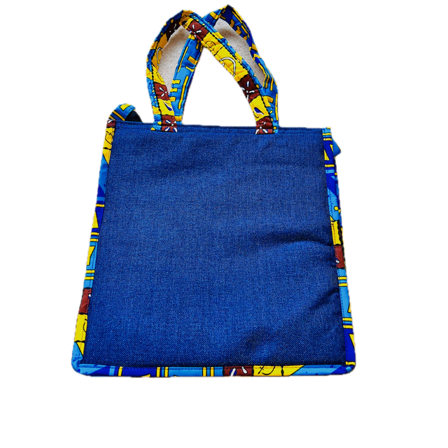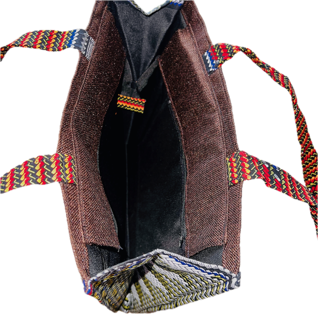 African designed hand / utility bag with embroidered pattern. Imported from Kenya. Width of bag is 34cm, height is 39cm, when opened out, the internal depth is 12cm. Each bag is closed by a zip across the top. See the sample zip picture, which is the same layout for each bag.