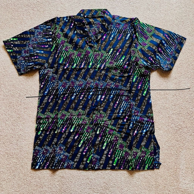 When laid flat the dimensions of this shirt are 57cm wide by 77cm from top of shoulder to bottom of shirt.